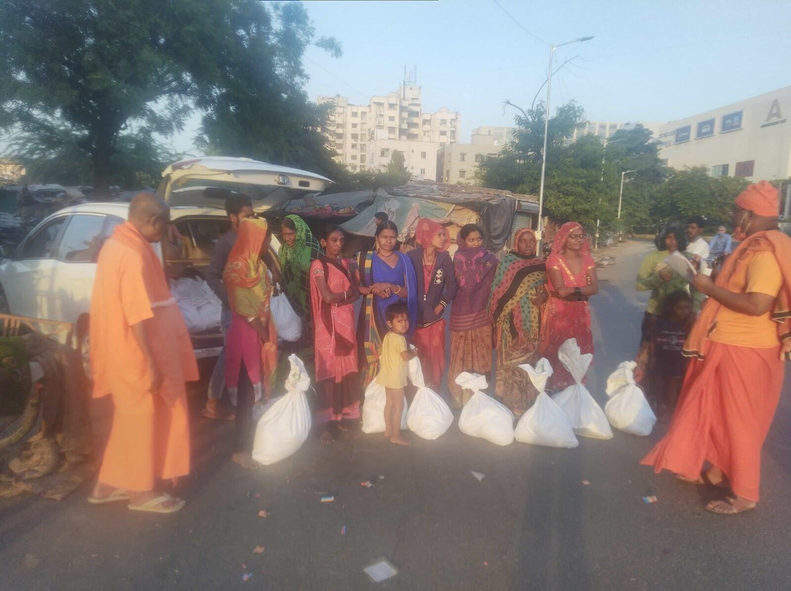 Distribution of Food items, Ration kits, Blankets and Garments etc. to poor and needy people.